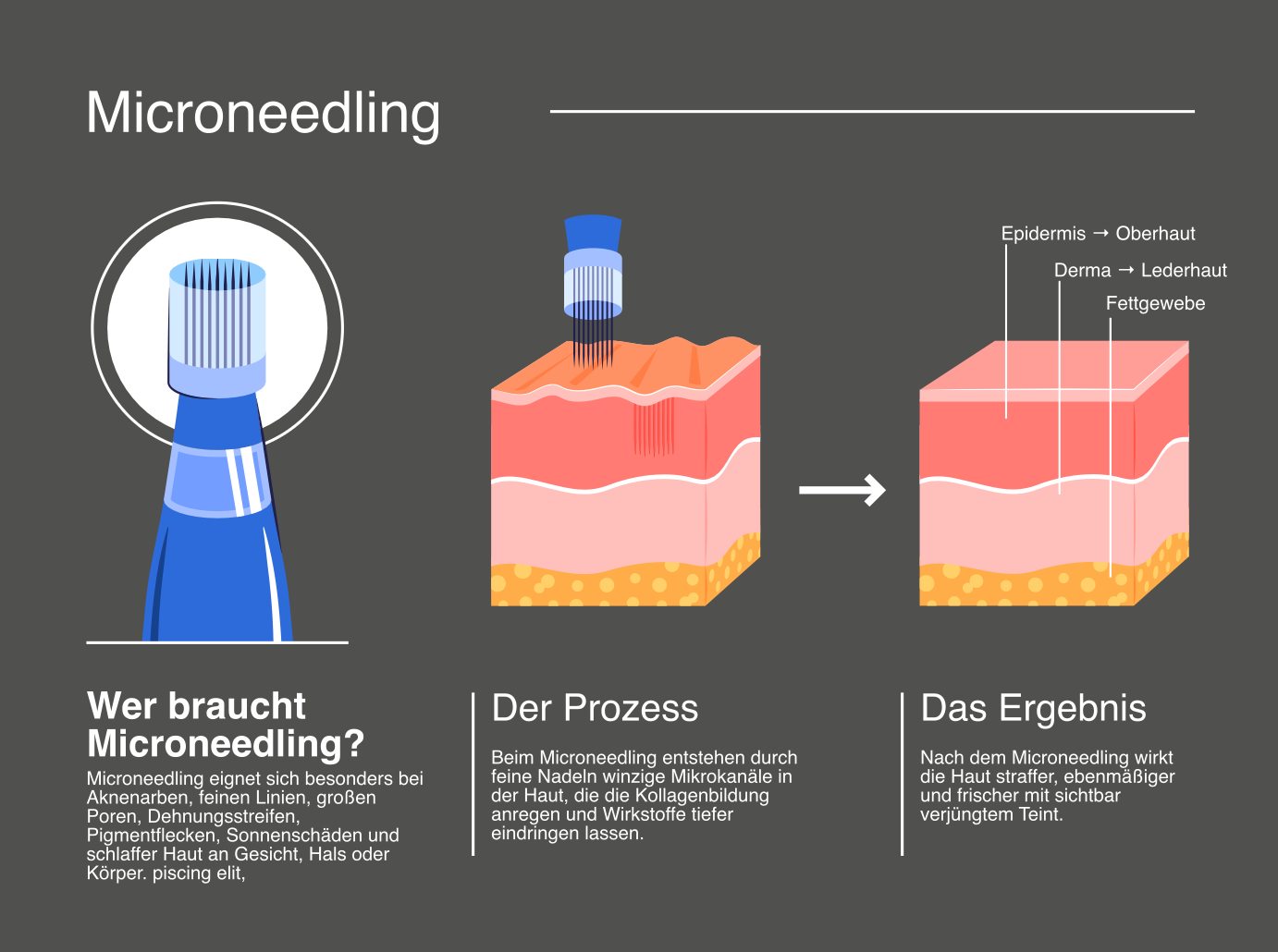 Akne-Narben und andere Hautschäden sichtbar zu verbessern. Ziel ist es, die Haut durch gezielte Mikroverletzungen anzuregen, ihre
